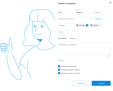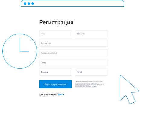 Установка на компьютер не требуется, достаточно 10 минут для регистрации и базовых настроек. Мы бесплатно помогаем клиникам переносить необходимые данные.